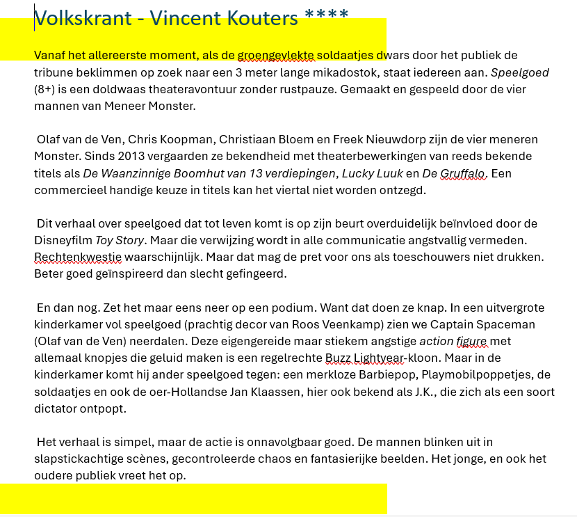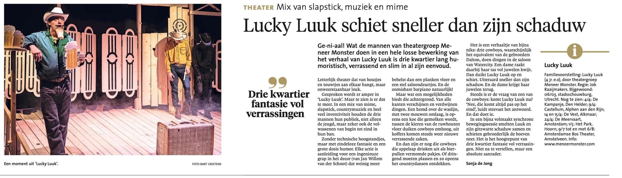 "Het trio acteert met zo'n aanstekelijke energie dat het iedereen meekrijgt" (...) Lekkere theaterkolder die voldoet aan een reeks adhd-sympthonen"