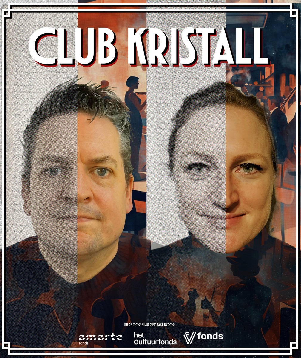Met Club Kristall duiken Quirine Smit en Robbert-Jan Proos in het nachtleven van rond de 2e wereldoorlog. Ze brengen werk en vertellen verhalen van artiesten die de oorlog niet hebben overleefd. Helaas een actueler thema dan je zou willen. Met een gepaste lichtvoetigheid brengen zij een aangrijpende voorstelling met prachtige liedjes en verrassend veel ruimte voor humor.