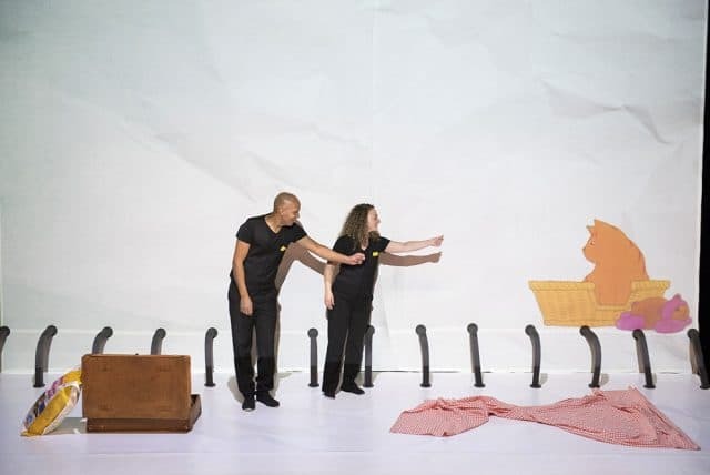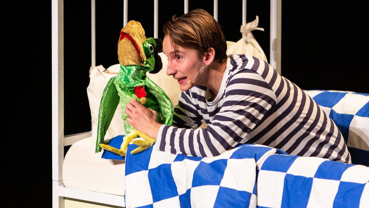Twee prentenboeken voor de prijs van één voorstelling. Omdat het originele boekje 'Hé, wie zit er opde WC?' een nogal dun verhaal heeft voor het theater heb ik 'Retteketet, we gaan nog niet naar bed', het andere bekende boek van van Straaten, er doorheen geweven. Met poppen, maskers stemmetjes en de nodige transformaties speelt Alexander Brouwer als een ware wervelwind alle personages uit de twee boeken in z'n eentje. Het resultaat? Een heerlijke achtbaan van een voorstelling waarbij je ogen te kort komt.